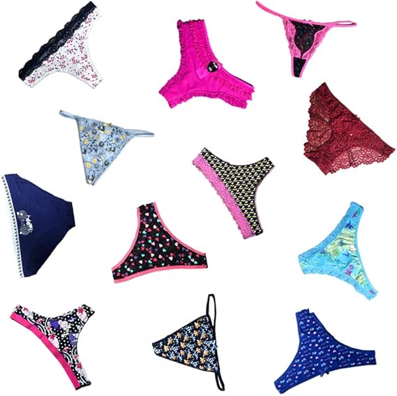 This set will include thongs, g-strings, low rise bikinis & brazilians, hipsters, boyshorts and briefs. Vibrant colors and patterns will be assorted. No granny panties. No duplicate.