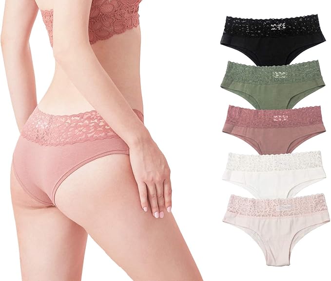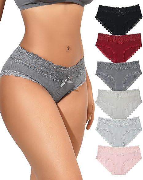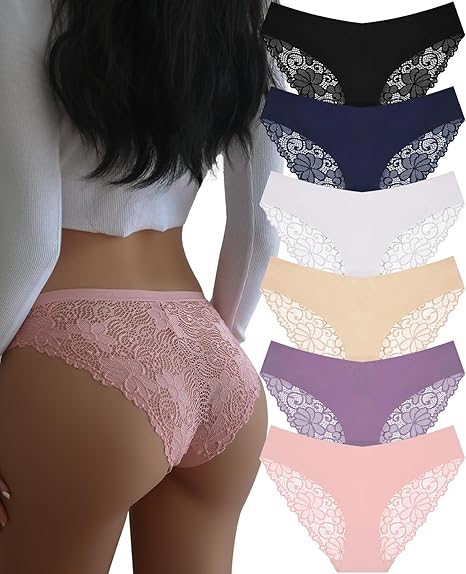 Sexy Underwear for Women Lace Bikini Panties Low Rise Cotton Hipster Stretch Ladies Cheeky Panty 6 Pack