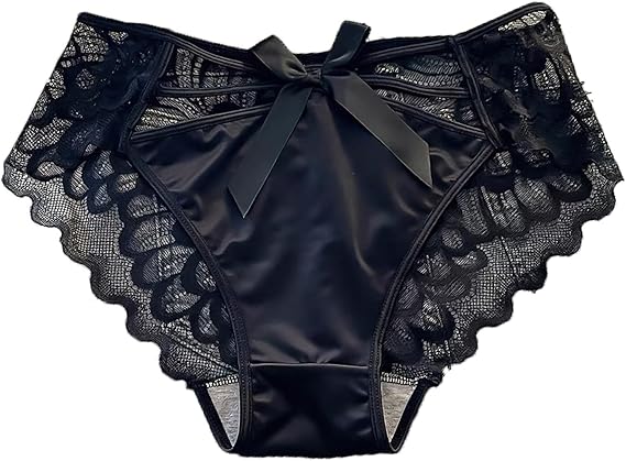 Women's Satin Panties Underwear Sexy Criss Cross Lace Back Full Coverage Hipster Panties Lingerie Briefs M-XL