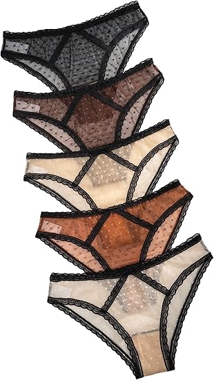 Women's 5 Piece Panties Lace Trim Mesh Underwear Brief Panty