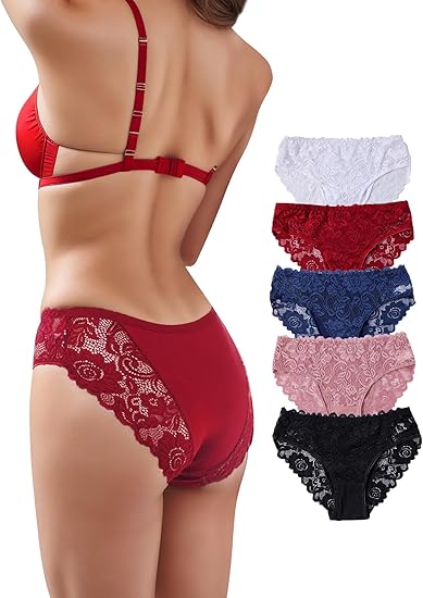 everyjoys Sexy Underwear Lace Panties for Women Bikini Underwear Hipster Underpants Lace Soft Breathe Briefs Multipack 5-Pack